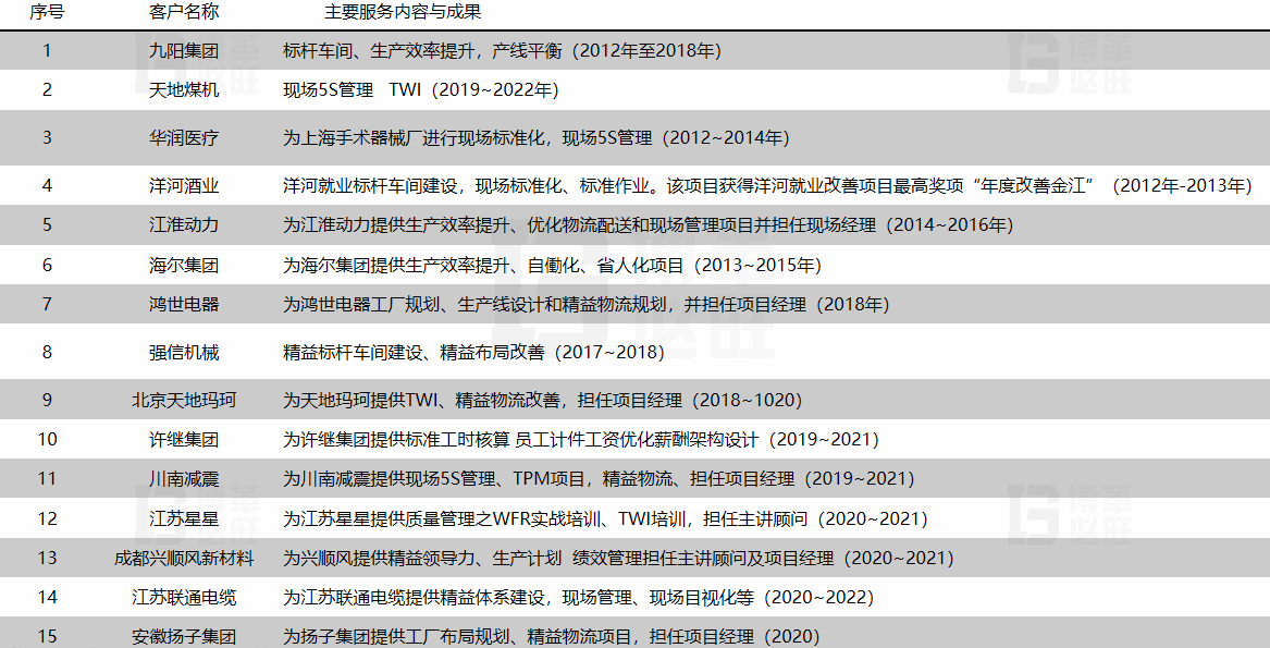 主要咨詢(xún)服務(wù)項(xiàng)目成就