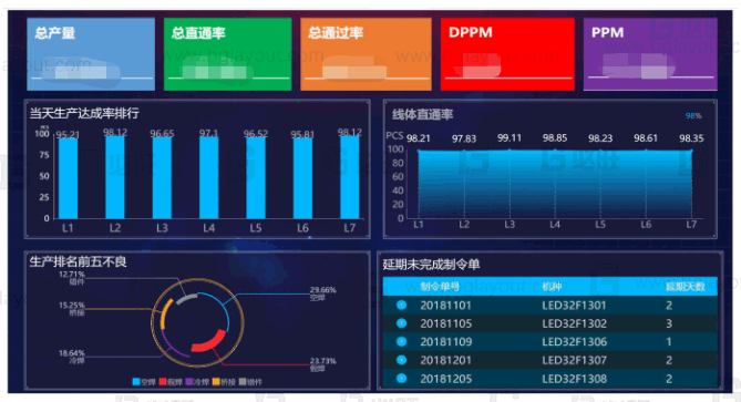 可視化—車間看板:透過看板工具及生產(chǎn)過程數(shù)據(jù)實(shí)現(xiàn)可視化看板的制作及呈現(xiàn)。