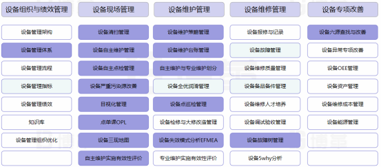第二步建立健全設備自主維護標準,完善自主維護分類:自主清掃、自主點檢、自主保養,通過規范設備管理自主維護行為,讓所有員工清晰認識到設備是自己的、小問題不解決一定會變成大問題,同時通過自主維護的自主清掃、自主點檢、自主保養的技能梳理,形成員工自主維護技能矩陣,將技能不足的人員列培訓計劃進行培訓。