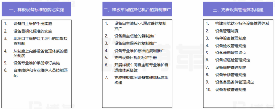 回顧TPM管理推進過程,博革咨詢有一套完善的推進方式,每個項目初期都會建立項目管理制度,搭建推進TPM的組織架構,以行之有效的辦法激勵員工積極參與到項目中來,同心同力打贏關鍵設備攻堅戰。