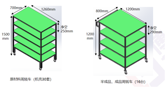 采用功能集群式布局,物流運(yùn)行距離長(zhǎng),次數(shù)多,沒(méi)有合適的載具,搬運(yùn)效率低下。