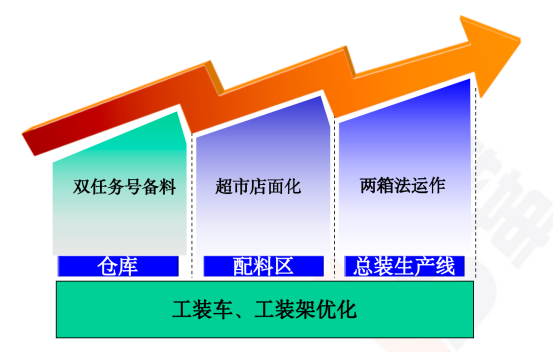 3) 物流工具和工裝的改善,減少了物流搬運次數,減少物流量。