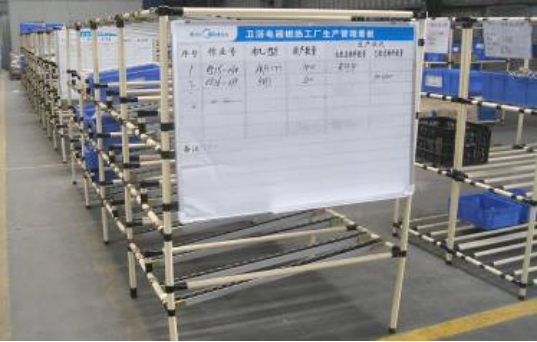 通過對配件車間內油壓機,火排沖壓設備,火排裝配線,水箱沖壓設備,小U開料設備,總裝車間備料區等設施進行重新規劃、調整,減少車間一次物流距離1500M,在制品面積下降63%,庫存金額下降50%。通過燃熱產品部物與情報現狀圖與理想圖對比,得出目前存在的問題并設置改善對策。