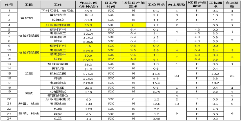 u 5000臺/年,需要生產人力104人,3300臺/年,需要生產人力73人。