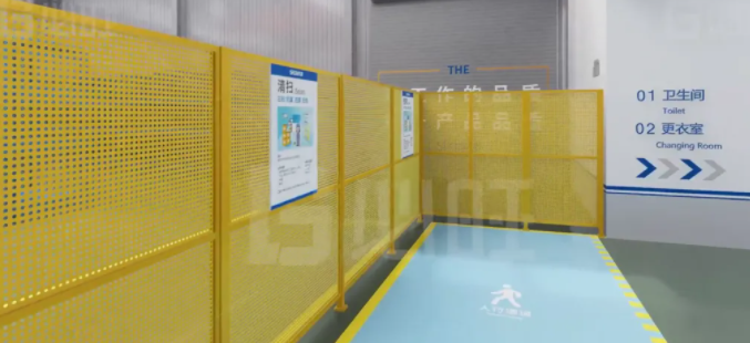 安全通道:工廠安全通道用黃色油漆標記地面線,上方設指示牌,通道保持暢通,保障緊急疏散。