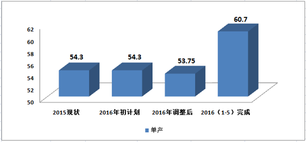 a)單產(chǎn)成果:2016年初單產(chǎn)計(jì)劃54.1萬噸/月/隊(duì),剔除搬家倒面停產(chǎn)影響,2016年1-5月份單產(chǎn)水平60.32萬噸/月, 較年初計(jì)劃提升11.50 %