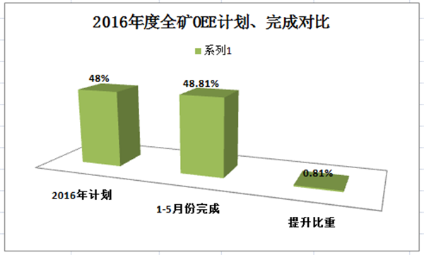b)OEE:2016年全礦OEE提升計(jì)劃48%,2016年1-6月份,全礦OEE完成48.81%(其中綜采45.83%、主運(yùn)輸51.79%)超年初計(jì)劃0.81%